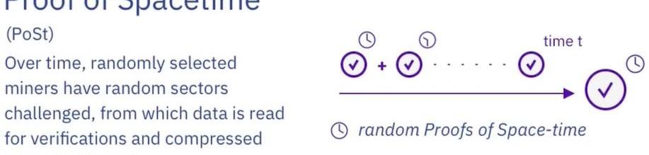 由于存儲礦工可以在提交初始證明后簡單地刪除數據,因此會定期要求存儲礦工提交其他證明,證明他們仍在存儲相關數據。這稱為時空證明。