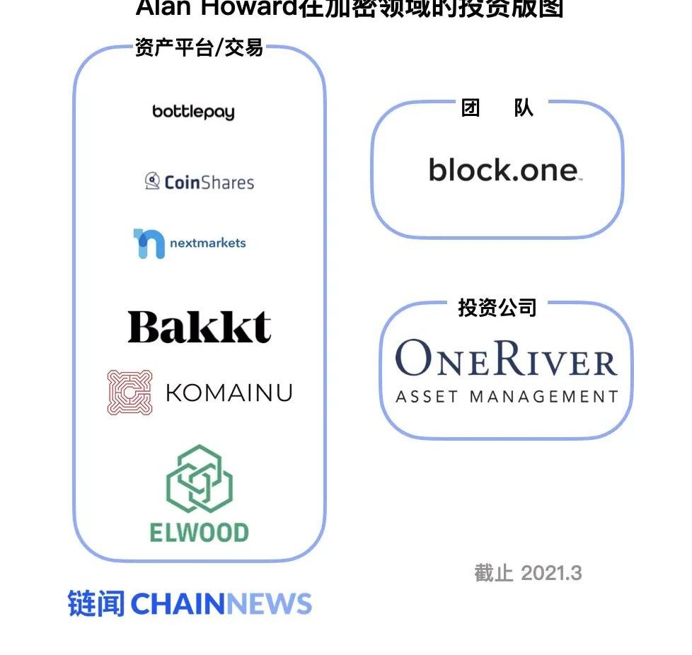 AlanHoward曾在2018年3月透露,自己個人持有一部分的加密貨幣資產,并且先后以個人的名義投資了EOS的開發團隊Block.one,以及洲際交易所擁有的數字資產平臺Bakkt。參考鏈接:https://cointelegraph.com/news/nyse-operators-crypto-platform-bakkt-completes-1825-million-funding-round投資加密交易所Bakkt