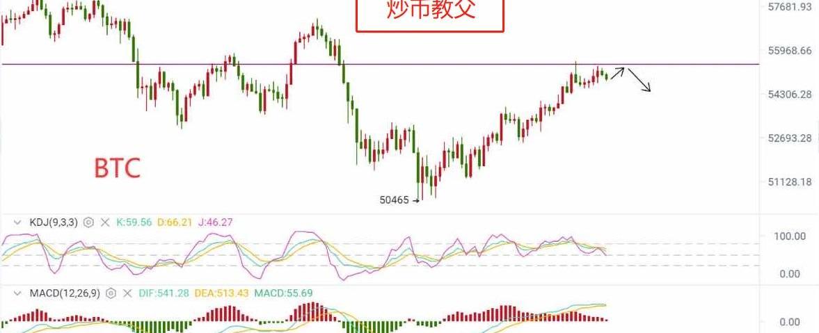 比特幣:小時線橫盤55000附近,幣價一直在震蕩中走高,趨勢向上移動,目前來到下跌的阻力區域,行情會有反復。均線方面,各周期均線向上發散,MACD頂背離,KDJ指標呈現死叉向下,幣價有一定的回踩需求,操作上建議逢高看回落。操作建議:可在54900—55400區間做空,目標點位向下看1000—1500點。教父交流BTC0770