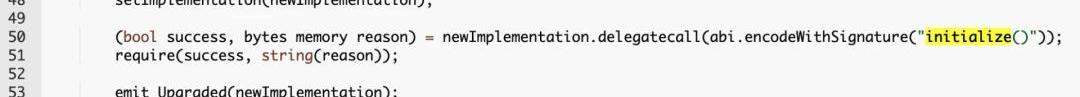 圖5:代理合約合約在升級代幣實現合約的時候會同時調用initialize()方法