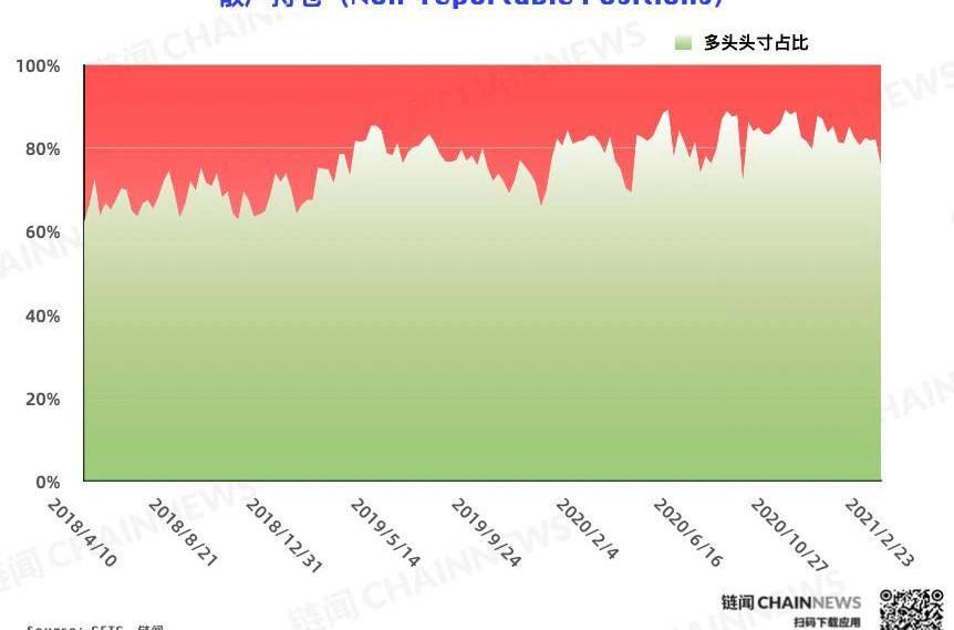 散戶持倉方面,多頭頭寸自3508張下降至2892張,空頭頭寸自760張上升至908張。散戶賬戶在最新統計周期內進行了態度明確的凈空調倉,多空持倉比數據中多單占比降至近26周新低。散戶又一次做出了順應市場運行趨勢的倉位調整。