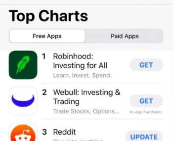 如果你問炒美股的留學生起床第一個會打開的軟件是什么?不是微信,可能會是Robinhood。彭博數據顯示,今年1月初,包括Robinhood在內App上的散戶交易量超過紐交所和納斯達克等地的機構交易量,這是自2008年來的首次。在蘋果的AppStore免費App排行榜中,GME事件最高潮的時候,Robinhood的下載量排在全美第一位。