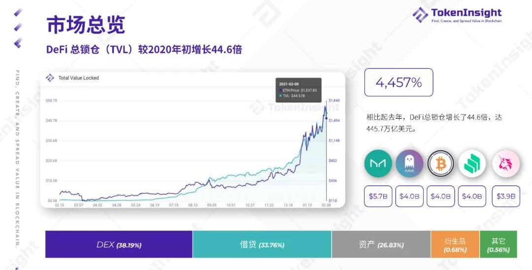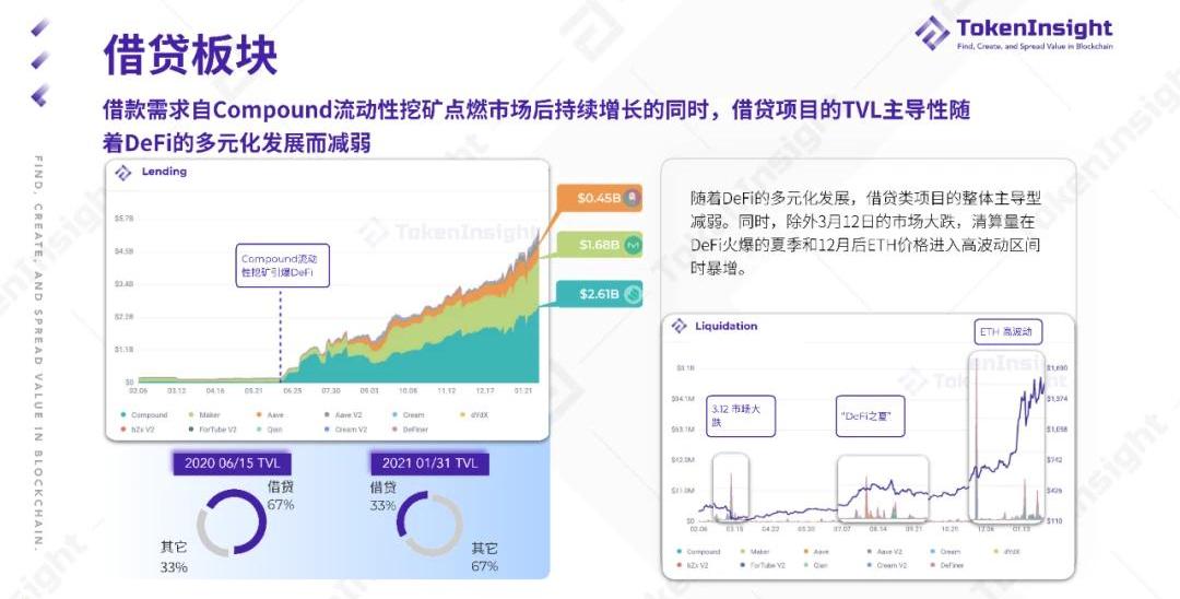 2020是卓越不凡的一年,也是災難重重的一年。新冠肺炎給全球經濟和人類生活帶來了深遠的負面影響。3月12日的大跌使市場失去信心,但隨之而來的DeFi的崛起引爆了整個盛夏。Compound流動性挖礦點燃了市場的激情,也催生了許多高收益的挖礦項目。但是高收益明顯無法持續,在八月底,“夏天“結束了。市場總是瞬息萬變的。SushiSwap抄襲了Uniswap的方案,并且發了自己的token,流動性大量被吸引到Sushiswap上。而Uniswap通過空投活動重新搶回了屬于自己的市場份額。同時大量AMM的DEX出現試圖解決無常損失與滑點的問題。除了現貨交易的DEX以外,借貸類項目又開始重新爆發,AAVE作為老大,年底TVL迅速增加,Token的價格也是屢破新高。DeFi的魅力在于其無需許可性、多樣性、兼容性和可組合性。作為基礎設施:DEX和借貸在不斷更新換代。頂層的應用也因此有了健康的發展土壤。DeFi發展的唯一邊界是你的想象。我們看到有許多的聚合器類項目爆發,鏈上衍生品也逐漸的擴大至規模化。現在你已經可以在DeFi生態內對沖風險。由于TVL占首位的借貸協議僅支持浮動借貸利率,固定利率類的創新在2020年下半年涌現。這類項目主要為支持固定利率借貸和支持固定利率收益。非超額抵押借貸的探索也在進行中。投資產品正在變得更加多樣化,而不僅僅是高收益高風險,但這類的產品仍處于相對早期的階段。雖然算法穩定幣的實驗早在DeFi爆發之前就開始了,但它們從未像在2020年四季度和2021年一季度一樣吸引眼球。這些資產被廣泛認為是危險的,尤其是那些完全沒有任何抵押物支撐的token。但我們仍然應該抱著開放的興奮的態度看待DeFi領域的各種嘗試。隨著以太坊擁堵的加重,網絡效率問題亟待解決,Layer-2協議的重要性日劇凸顯,它們被不斷整合進各種DeFi項目中。同時其它數據服務和工具類的基礎設施也受到市場歡迎。在以太坊DeFi擴張的同時,其它公鏈上DeFi的建設也在如火如荼地進行著。其中坐擁用戶流量和資金的中心化交易所具有天然的優勢,在短時間內啟動了公鏈并吸引了不少的項目。然而,雖然中心化交易所公鏈的手續費要比以太坊低很多,它們的整體生態還是無法和以太坊抗衡。BSC和波卡是以太坊外的兩條發展亮眼的公鏈。由于有Binance的支持,BSC對想成為“早起鳥兒”的項目有著天然吸引力。而波卡有著眾多的信徒,生態也一直在不斷地建設當中。EIP-1559協議將可能解決高手續費問題并使手續費可預測,但同時對礦工的利益也是一種損害,gaslimit的提升對網絡安全也有一定威脅。但是,它仍然是一種保護以太坊用戶和HODLers的極好的方案。隨著以太坊作為基準費率銷毀,以太坊的價格也將上漲。