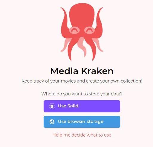 除此之外,Inrupt已經獲得了少數開發者的支持,已經有一些采用Pods技術開發的應用可以使用,MediaKraken,一個影評網站,用戶可以在上面追蹤、評價和分享自己最喜愛的電影和列表。值得注意的是,它的注冊登陸界面直接詢問用戶想要把數據存儲在哪里,可選項包括SolidPods,或者直接存儲在瀏覽器里,服務提供方不會提取這些數據。