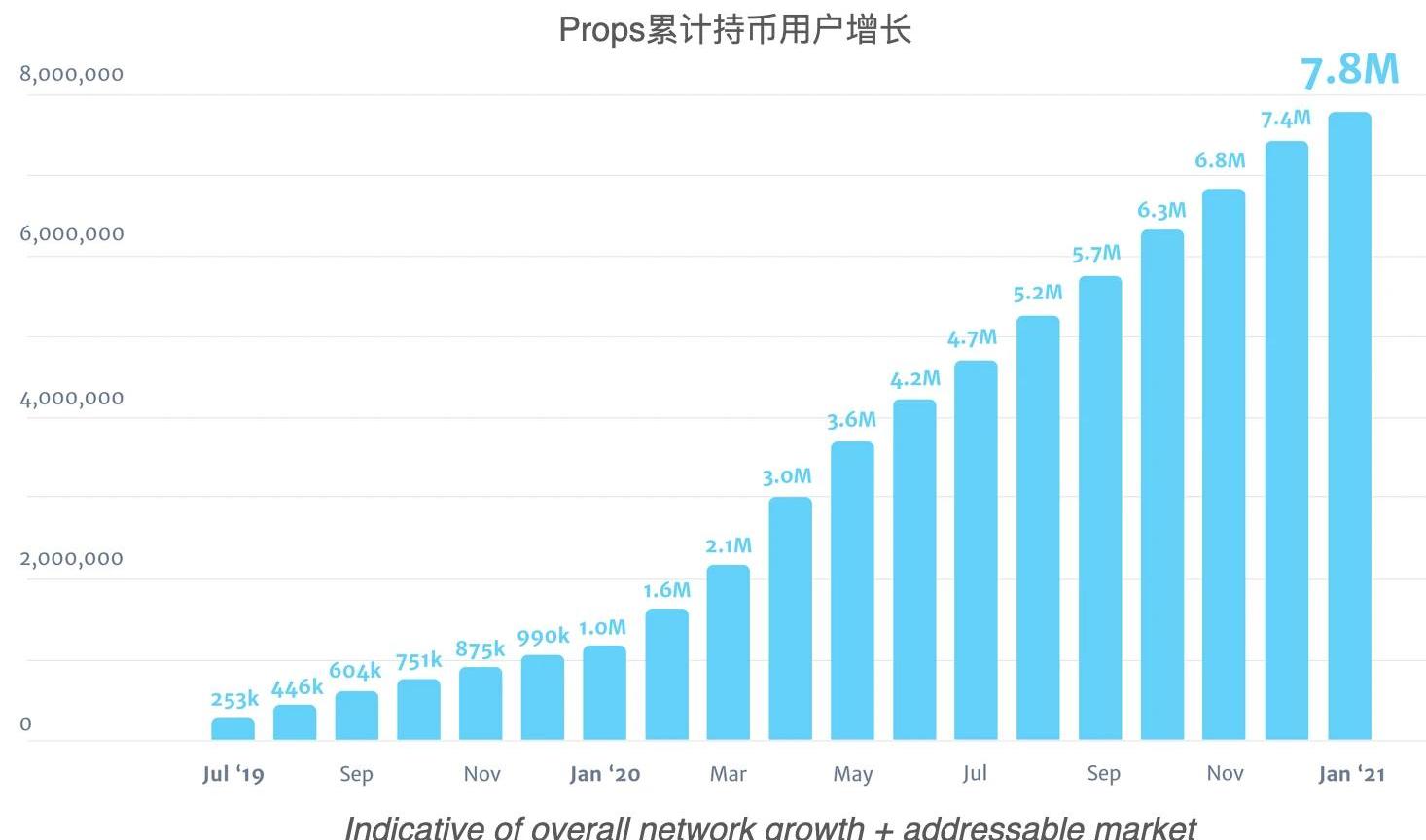 大家好,非常高興來到今天的Props亞洲峰會,感謝Odaily的邀請我們來介紹一下Props的發展、代幣經濟、社區,以及未來的一些規劃。Props做的主要是忠誠度積分代幣化的工作,可能有一些傳統的忠誠度積分、資產和代幣,會給你帶來一些經濟利益。但它不是證券,它只是給你帶來積分或優惠,或者把網絡上的所作所為轉換成經濟利益。那么用我們的App能得到什么呢?你回想一下,你在一些App分享或創建很多內容,但是當它上市的時候,并沒有把經濟利益分享給你,所以我們希望給你這種機會,讓你在網上作出貢獻的時候可以拿到你應該所得的一些經濟利益。對于采用的客戶來說,則可以為App增加收入和用戶忠誠度。Props剛開始的時候人并不多,客戶也并不多,現在幾乎達到了800萬,不到1000萬人的用戶增長,還是非常快的。