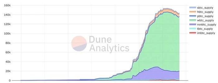 根據最新鏈上統計數據顯示,鎖定在以太坊區塊鏈上的比特幣代幣數量越來越大,到目前為止大約有141,231枚比特幣鎖定在基于以太坊的錨定幣中,價值約為33億美元,其中大約有7中不同的包裹比特幣或合成比特幣,包裹比特幣錨定量最多,目前約有115,411枚。本文撰寫時,已發布的WrappedBitcoin和SyntheticBitcoin大多被鎖定在以太坊網絡中,總計約為141,231BTC,數量最大的WrappedBitcoin項目是WBTC,它是一個ERC-20代幣。北京時間12月21日,比特幣錨定幣WBTC首次躋身DeFi鎖倉量第一名,總鎖倉量達到28億美元,第二名Maker鎖倉量為26億美元,位列3-5名的DeFi項目/協議分別為:Uniswap、Compound和AaveV1。比特幣錨定幣是發行在非比特幣網絡上的價格錨定于原生比特幣的一類特殊代幣,WBTC是由Kyber、RenProtocol和BitGo聯合發行的BTC,與真實的比特幣1:1錨定,目前WBTC代幣發行量為115,631枚。
