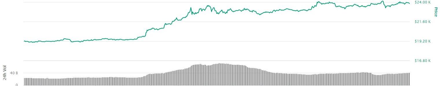 資料來源:CoinMarketCap,TokenMania圖2本周比特幣價格變化