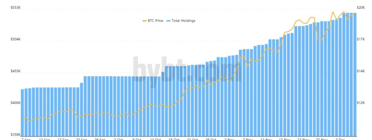 BTC期權看跌/看漲比率來源:Cryptorank.io隨著比特幣價格接近20000美元,投資者尋求下行保護是很自然的事情。結果,看跌/看漲期權比率在12月2日達到0.70的峰值。盡管有所增加,但看漲期權仍比看跌期權多30%。在這段興奮期過后,這一指標已回升至健康的0.63。考慮到0.67是過去3個月的平均值,這應該被視為看漲,因為購買保護性看跌期權的投資者越來越少。比特幣價格走勢平穩,但投資者仍看漲