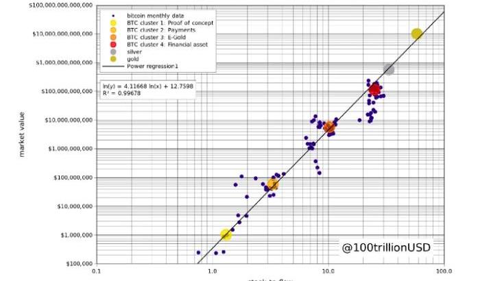 來源:‘BullishCaseforBitcoin’—VijayBoyapati那么,比特幣在這一切中處于什么位置呢?比特幣的總供應量為2100萬。這是怎么回事?比特幣的“通貨膨脹率”已經被預先確定了。每隔4年就會出現所謂的“減半”,即每隔10分鐘產生的新比特幣數量減半。最近的一次減半是在2020年5月,每10分鐘產生的比特幣數量從12.5個減少到6.25個。因此,比特幣目前的年度“通貨膨脹率”約為2%,其存量與流量的比率為56,與黃金非常相似。由于這種減半每4年發生一次,比特幣將變得越來越難以挖掘。因此,隨著時間的推移,比特幣的通貨膨脹率將趨向于零,股票流量將趨向于無窮大。花點時間想想這有多不尋常。因為無論價格漲得多高,世界上沒有任何一種貨幣的供應量不會增加。如果比特幣的價格上漲了100倍,這絕對會對其供應有影響。比特幣的一個優點是,礦工越多,比特幣的供應不會改變,但正如前面所討論的那樣,網絡的安全性反而會提高。比特幣是“最難”的貨幣形式。下一個明顯的問題是,這種稀缺性有多少價值?一位名叫“PlanB”的匿名推特用戶基于“股票流轉”的概念創建了一個模型。他繪制了比特幣的月度市值與股票流動率(見下圖)。