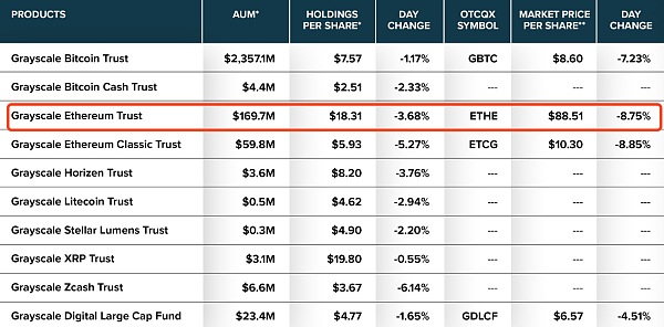 不過GBTC和ETHE的體量差距很大,GBTC資產高達23.6億美元,而ETHE資產僅有1.697億美元。