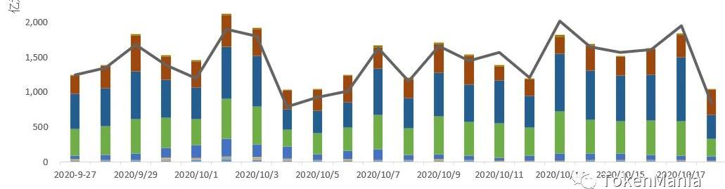 資料來源:非小號,TokenMania圖4九大交易所歷史每日總交易量變化