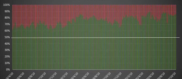 散戶持倉方面,多頭頭寸自2696張上漲至2961張,空頭頭寸自491張回落至486張。雖然散戶在空單上的減持幅度非常有限,但是這類賬戶是最新統計周期內考慮多空雙向調倉的情況下唯一進行了明確凈多調倉的賬戶。當然,在行情大幅波動的情況下順向調倉對于散戶賬戶來說并不令人感到意外,所以不必對此做過度解讀。