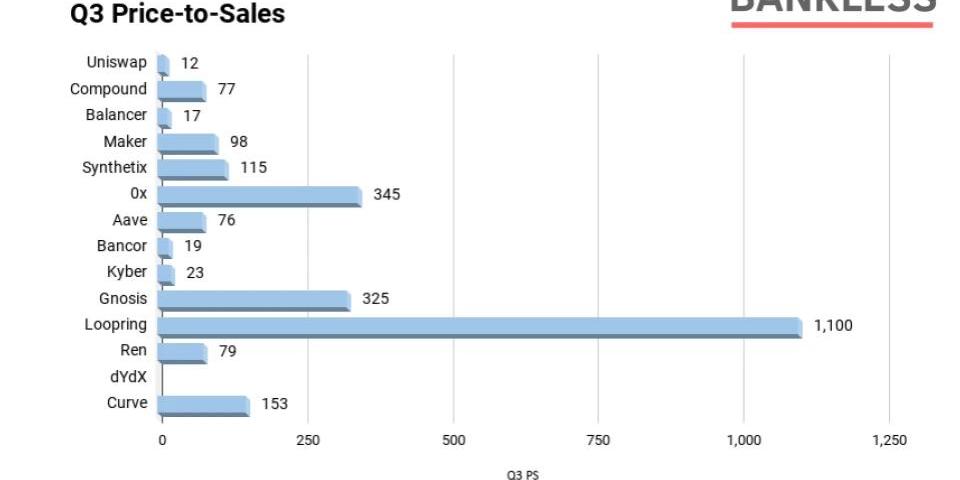 市銷率是按協議在9月30日的市值除以第三季度的年化收入得出,數據來自TokenTerminalDeFi代幣