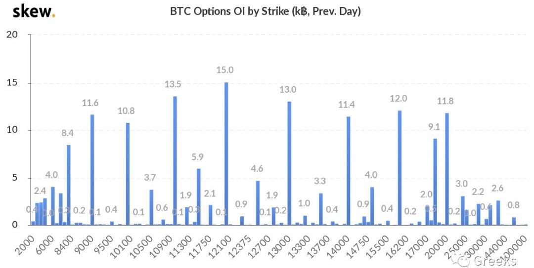 期權各期限IV平穩下降。目前價格不斷沖擊新高未果,比特幣各期限IV已經接近行情來臨之前。期權中遠期的偏度skew維持偏移13%附近,短期恢復到6.7%,短期Call降價明顯。從OptionFlows數據看,Call的成交下降明顯,Put的成交開始反彈。
