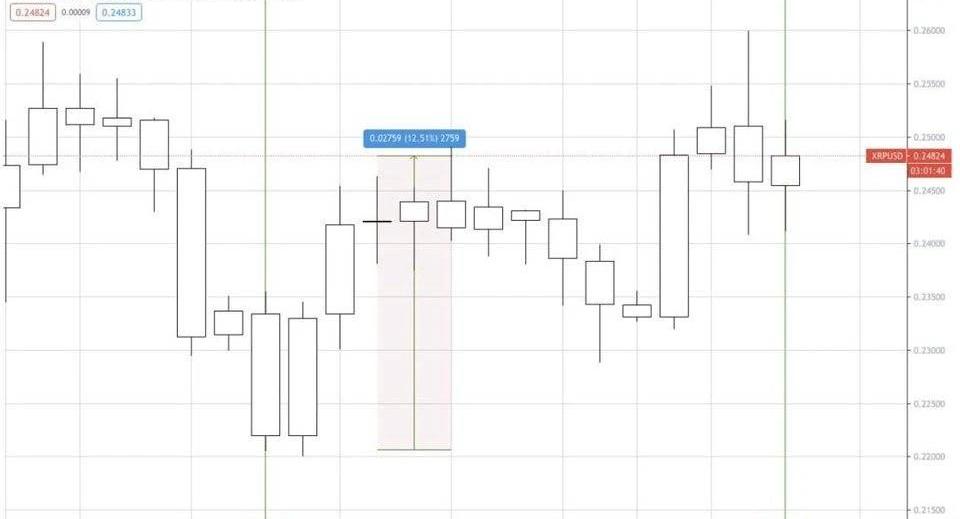 XRP/USD短線反彈和阻力線如下圖,我們可以看到,XRP目前處于一個有良好支撐的位置。XRP有0.23美元的支撐線,在這旁邊XRP還有H&S;藍線的支撐線。XRP也有可能將橙色線作為支撐線。橙色線有多個驗證點。這些多層次的支撐對于希望XRP上漲的人來說是個好消息。XRP可以利用這些支撐線將自己拉到0.253美元的阻力位之上。