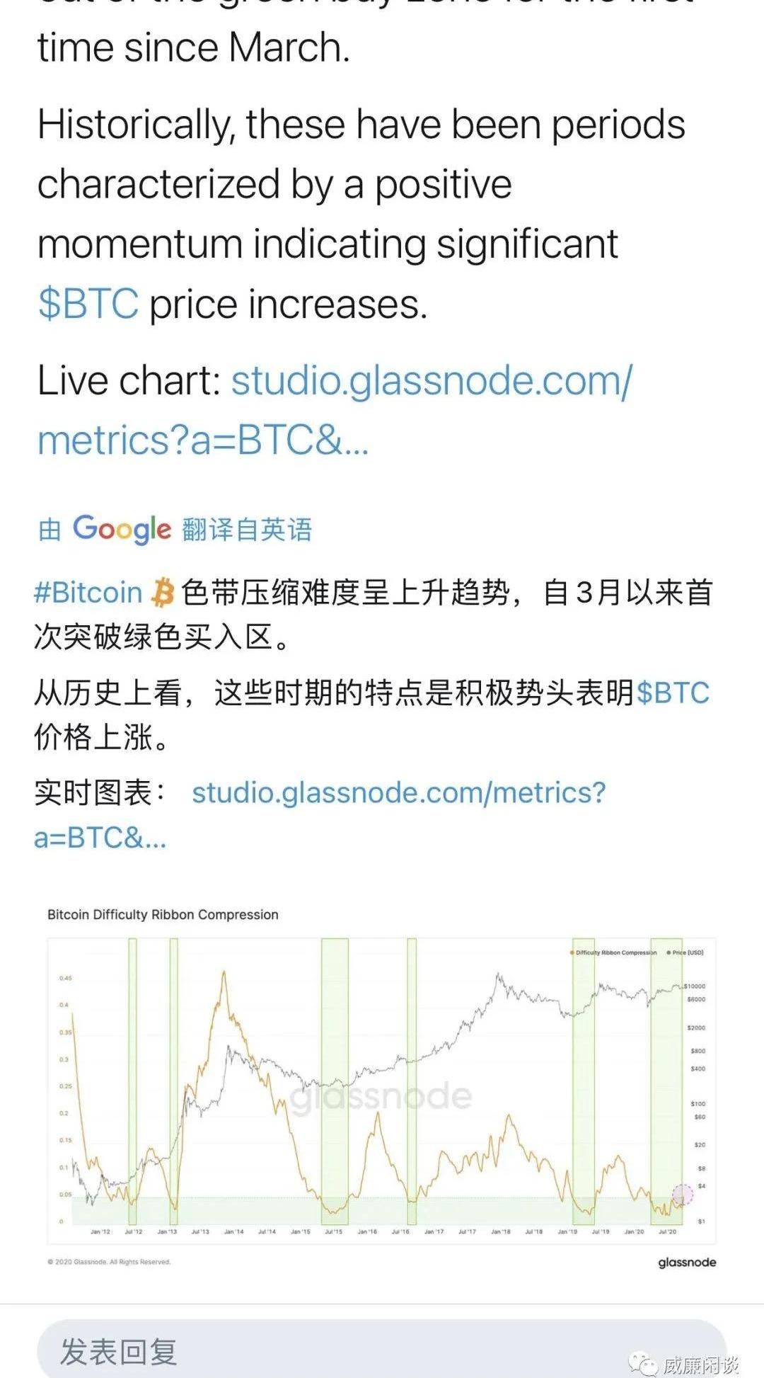 今天過完第四季度就開始了,2020年的最后一個季度,加密貨幣市場的表現會不會好呢?我當然是一直保持樂觀的。昨天看到了一個不知道是什么指標的指標顯示比特幣已經走出了一個季度的陰霾,開始進入“綠色買入區間”: