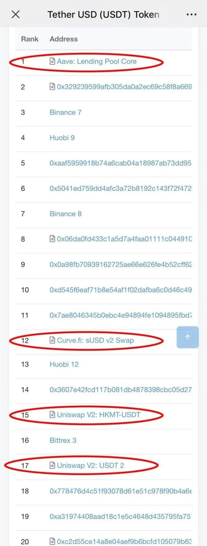ERC20-USDT主要持倉地址,信息來源:Etherscan
