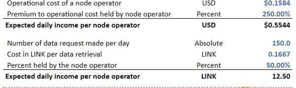 假設每天相對較好地利用150個數據檢索,并且執行每個任務的成本為0.16枚LINK,則節點運營商每天有望獲得12.5枚LINK。讓兩者相等,得出的結論是,LINK代幣的公允價值應小于5美分,才能滿足上述邏輯。結論