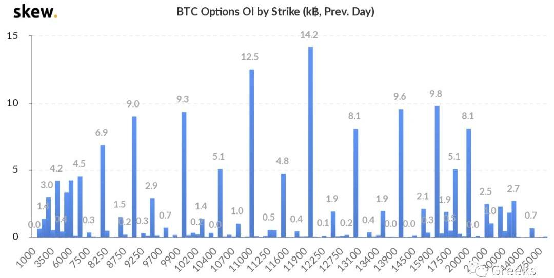 偏度沒有明顯變化,短期虛值Put比較貴。從OptionFlows數據看,風平浪靜的行情,CallSells占主力,占比達42%。持倉分布如圖所示。本月度名義持倉7.43萬幣,年底名義持倉2.88萬幣。