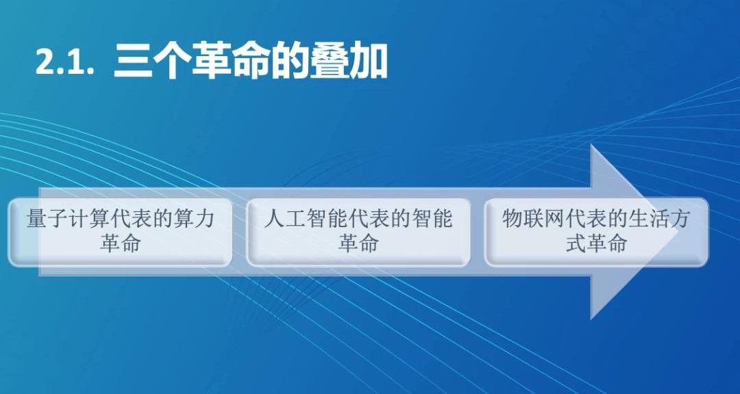 過去20年的科技革命,出現了與19-20世紀的科技革命完全不一樣的特征。19-20世紀的科技革命,屬于鏈條式的和線性式的革命,常常是一個科技革命引發另外一個革命,一個科技革命可以派生出其他科技革命。現在不是,現在的科技革命具有離散型,多元化,疊加性的特征。在未來的5年,很可能要面對的是以下三個革命的疊加:*量子計算代表的算力革命;*人工智能代表的智能革命;*物聯網代表的生活方式革命。