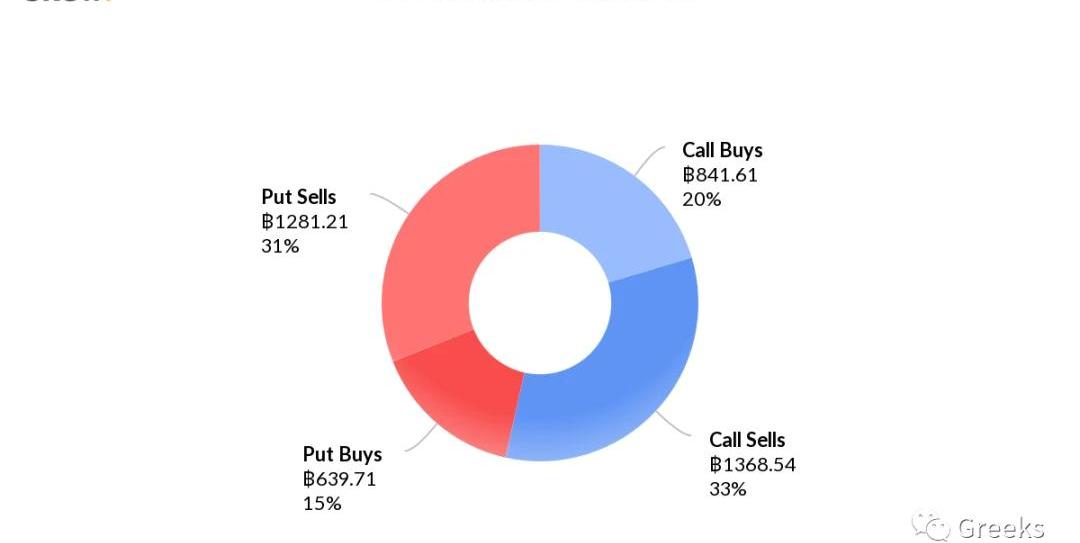 從成交占比看,看漲期權占了80%的成交量,其中CallBuys以名義價值15659ETH占據了46%,幾乎都是看漲期權在成交。