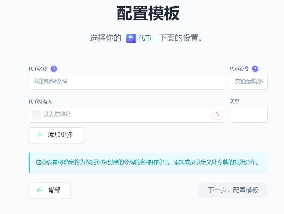 在創建組織時,可以自由設置不同的治理參數,比如最低投票率、通過百分比、投票期限、投票緩沖時間、投票延遲時間等,然后再經過簡單的配置就能夠創建成功。