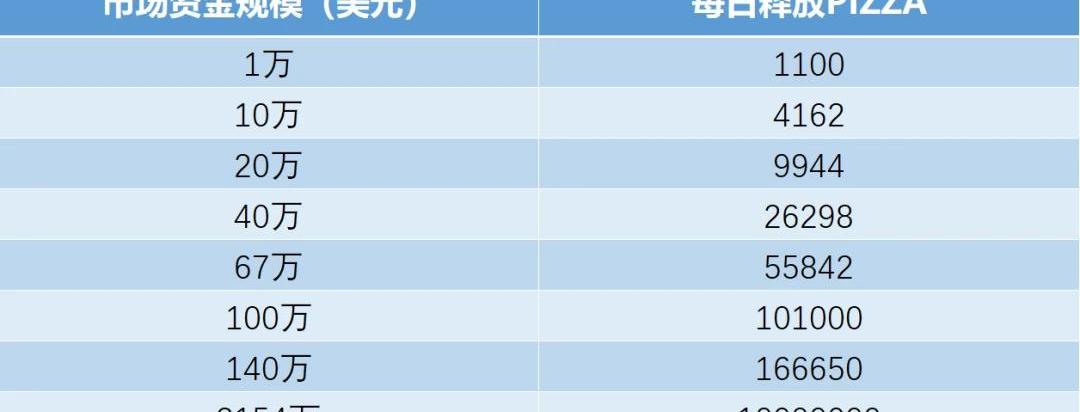 借貸獎勵借貸即挖礦,在PizzaLend的版塊進行存款或借貸即可獲得一定數量的PIZZA獎勵,當前市場總值51萬美金,獎勵總額:1000萬PIZZA,獎勵完畢即中止,持續時間不定。其中存款方獲得獎勵PIZZA的40%,貸款方獲得60%,也就是貸款方能夠獲得更多的PIZZA獎勵,可以在頁面上一鍵領取。每日釋放的PIZZA標準如下圖所示: