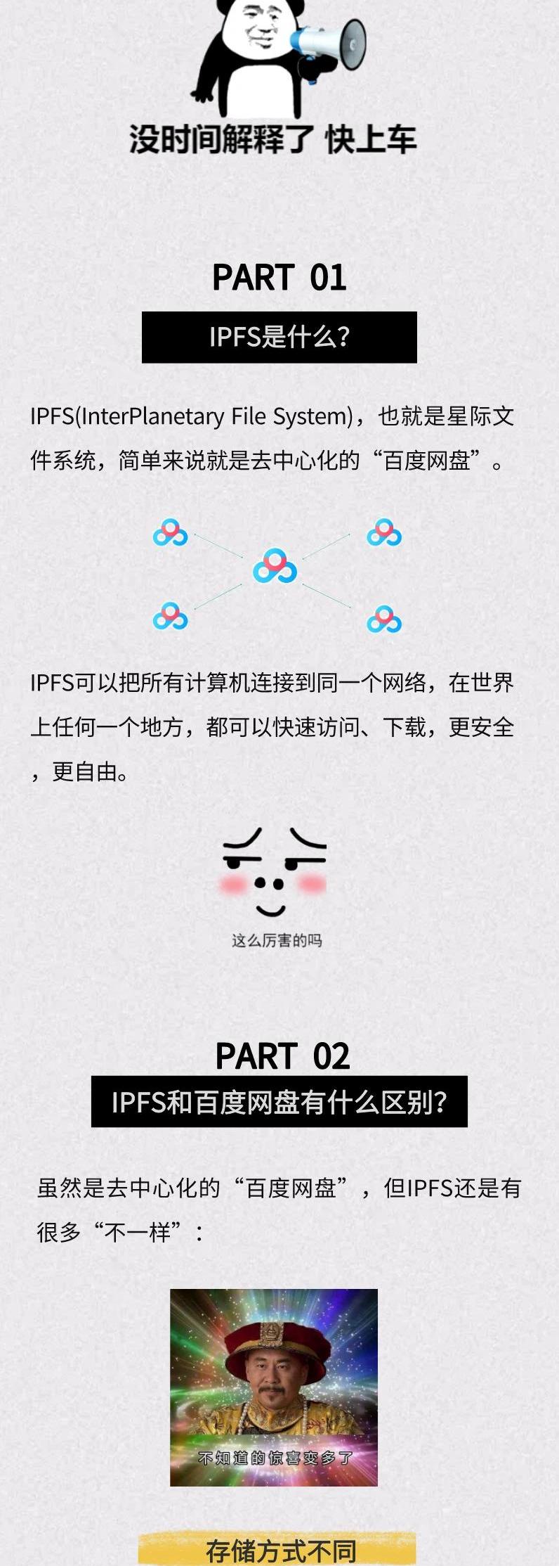 XRP/HKD-0.86%你還在用百度網盤存儲文件嗎?你還在忍受龜速的上傳和下載速度?你還在因為網盤資被和諧而困擾嗎?如果現在有人告訴你以上困擾通通都能被解決存儲還能賺錢你會心動嗎?這就是IPFS的價值。