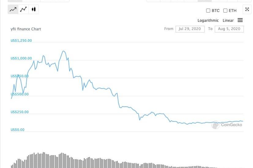 YFII的出現,分流了部分YFI的用戶。理論上,社區「原住民」的利益可能會受到損害。不過,YFI社區目前并不反對這個新協議,創始人AndreCronje也公開表示過支持。有中文社區的成員表示,用戶有選擇的權利。8月4日,YFII社區發起第一個正式提案,建立YFIIVault,這相當于是一個新功能,為普通DeFi用戶提供更簡潔的服務,實現一鍵入金、一鍵提現,在能獲得市場最佳收益的同時,節省合約操作中的高昂Gas費用。目前,這個提案尚未正式執行。新發行的YFII總量僅比原協議代幣增加了1萬,即4萬枚。但在產出方式上,YFII參考了比特幣的減產模式——第一周產出2萬,往后每周減半,直到全部開采結束——以此來延緩幣的發行速度,試圖讓新協議能可持續發展。曹寅向蜂巢財經表示,早期的YFI被掌握在大量巨鯨手里,導致不持有YFI代幣的社區成員無法參與投票。在YFII的新機制中,不持有YFII的用戶也可以參與投票,只要是協議的使用者,都可以參與到社區的各項治理中來。他還指出,YFII通過減少代幣的流通環節來降低協議的使用成本,讓資金量較小的用戶也可以參與。延緩了代幣分發速度,也讓YFII在DeFi二級市場上出現了失利。8月5日下午6點,YFII報價145美元。相比7月29日上線時的460美元,跌幅70%。YFII曾在7月31日達到歷史高點1128美元。