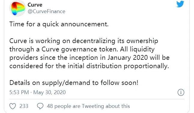 正如Compound和Balancer一樣,CRV將由那些為協議提供流動性的人獲得。如前所述,這種分配模式具有追溯效力,這意味著那些向曲線提供流動性的人將從最初的分發中獲得分配。
