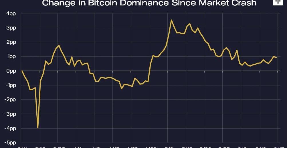 “我們認為,在一段時間內,比特幣的表現可能會超過其他代幣。從歷史上看,比特幣的主導地位平均持續了大約4個月,平均漲幅為7.8%。我們相信這種情況很可能會再次發生。”“比特幣的主導地位”——比特幣在整個加密貨幣市場的份額——在3月中旬為64.60%。該指數在5月19日達到最高點68.73%,現在回升到64.6%。我們預計它會下降,因為其他加密貨幣開始表現出色——如上所述。