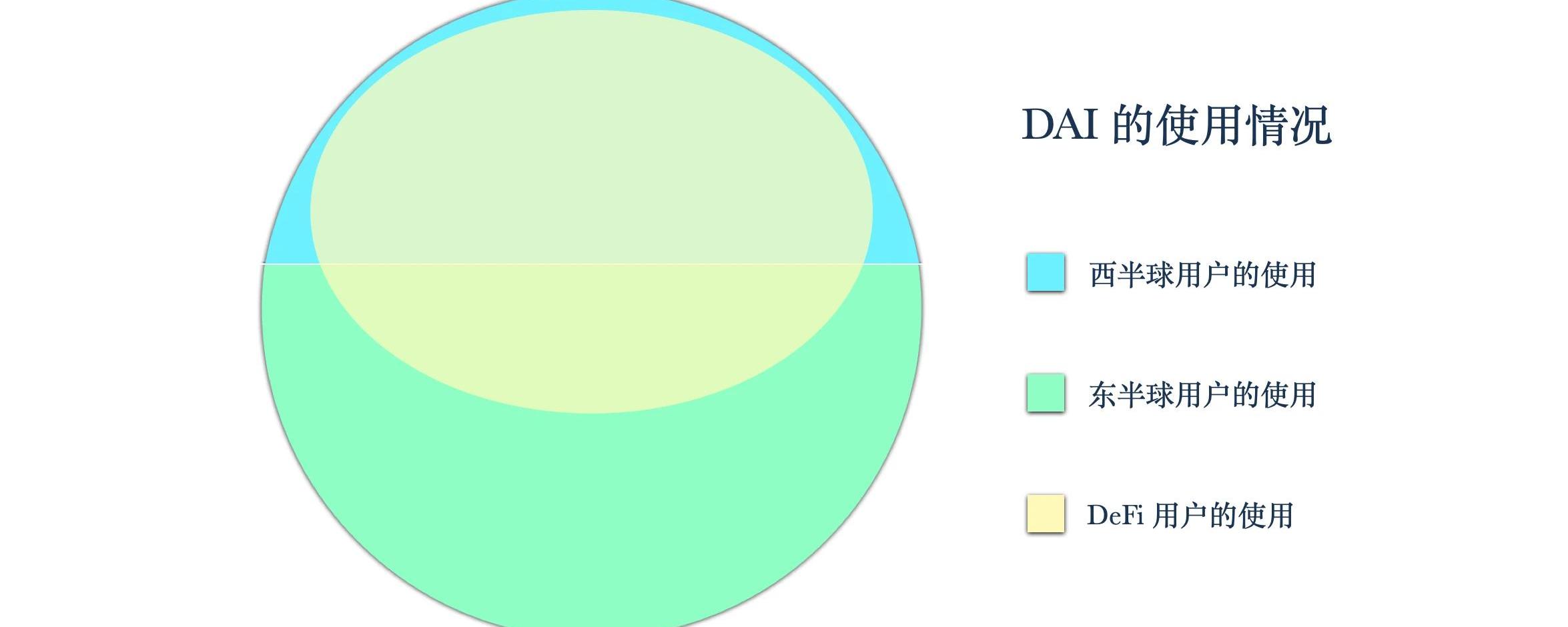 來源:MYKEY,Etherscan我們看到,該熱力圖相比DAI在DeFi應用中使用時間的熱力圖發生了較大變化——在過去一個月,除5月10日外,DAI的使用都主要集中在北京時間9:00至次日1:00;而在1:00至9:00間DAI的使用相對不活躍。因此,此熱力圖顯示DAI的使用者更多地集中在東半球。綜上,我們可以得出結論:西半球的DAI持有者比東半球DAI持有者更多地將DAI用于DeFi應用,但整體上DAI在東半球使用更多。我們可用下圖簡潔地展示DAI的使用情況。