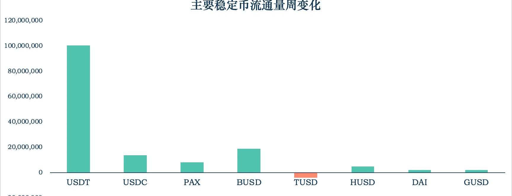 來源:MYKEY,Coinmetrics在過去的一周,主要穩定幣的總市值增長了約1.43億美元,周增長率高達1.33%。