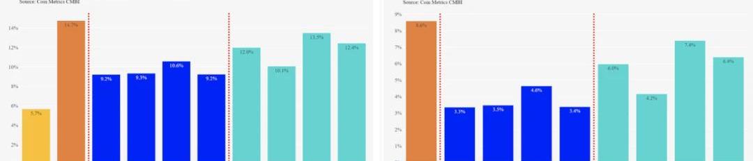來源:CoinMetricsReferenceRatesCMBletchley(CMBI)指標見解在5月的最后一周,大多數CMBI和Bletchley指數彌補了前一周的損失,其中CMBI的ETH指數表現尤其出色。上周CMBI的ETH指數僅下跌了1%,再次表現最佳,本周回升了14.7%。所有Bletchley指數的回報率都在9%至11%之間,這表明了所有大型,中型和小型股資產的市場均勢。