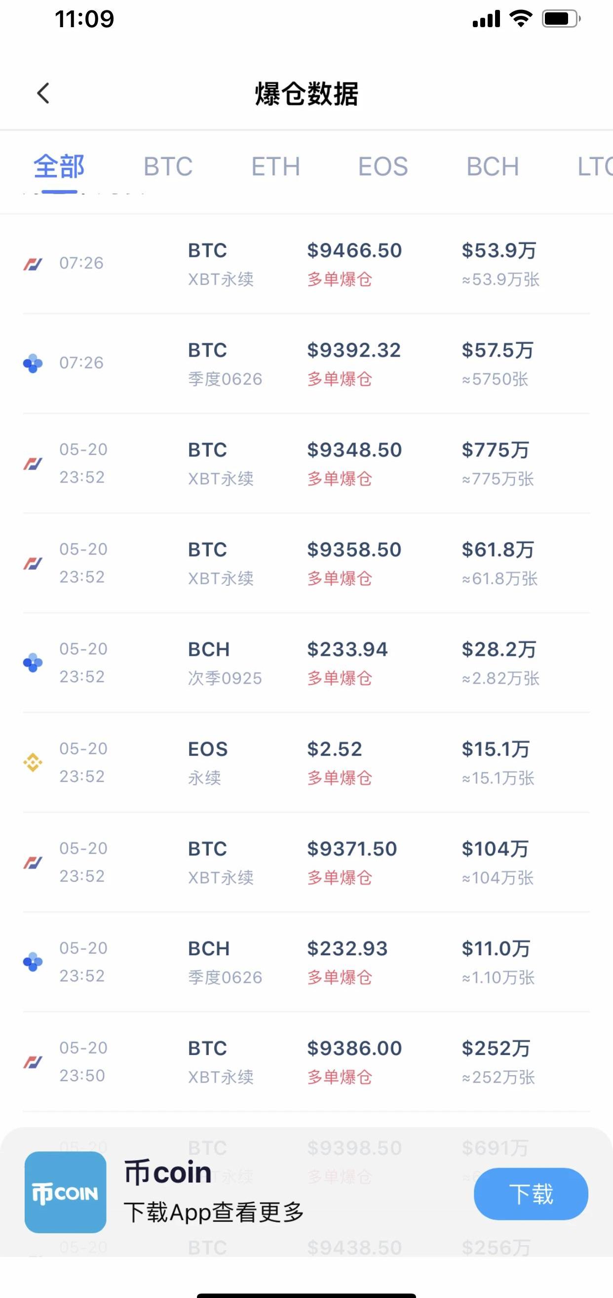 根據幣coin圖標顯示,絕大部分投資者屬于多單被爆,24小時多單爆倉達4.83億美元,5月20日的爆倉金額也創下了近十日爆倉金額新高。不少投資者感嘆:“比特幣僅僅500美元的跌幅就讓這么多資金爆倉了,往日上千美元的跌幅也達不到這種效果啊!”其中大額多單不少,其中最大單筆爆倉單發生在BitMEX-ETHM20,爆倉金額高達4778萬美元。