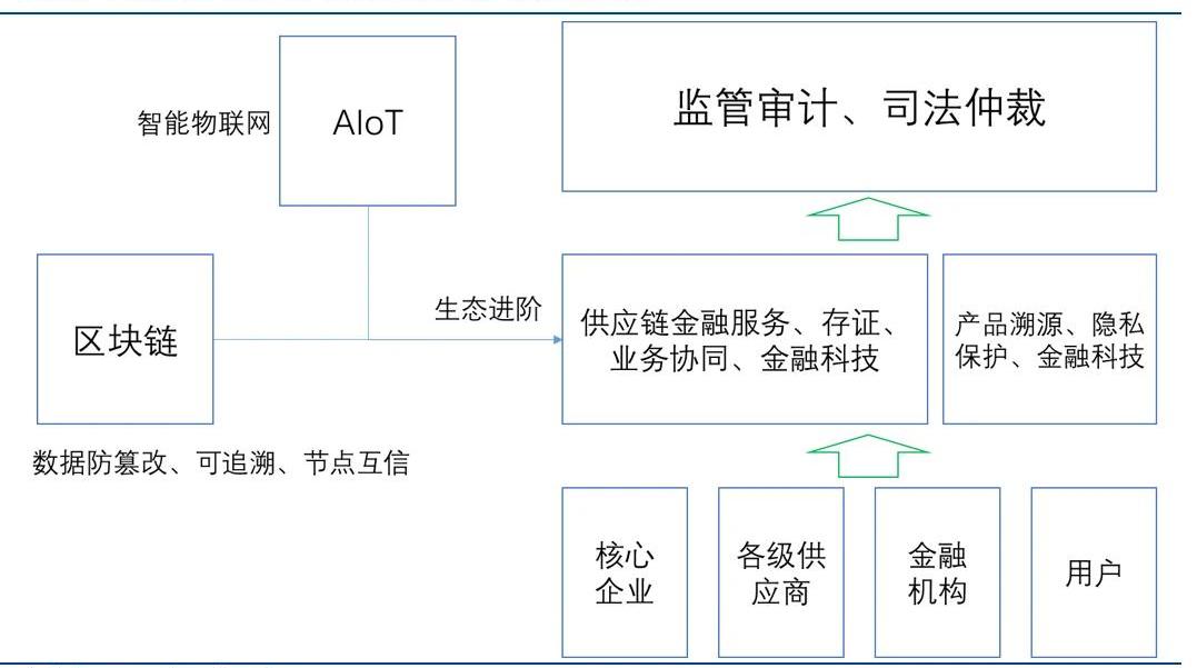 市場低估了區塊鏈在實際經濟全產業鏈環節的積極作用。目前,縱觀產業鏈,核心企業與各級供應商之間存在一定的供應鏈金融服務、存證、業務在線協同、金融科技等核心痛點,而用戶則更關注產品溯源、個人隱私保護、金融科技創新等,而從監管審計、司法仲裁更是市場經濟的健康運行的底線。區塊鏈打造的信用價值網絡,正是解決以上問題的關鍵;結合AIoT等智能物聯網技術,全面實現線上數據、線下產品的深度綁定,在全產業鏈各環節發揮關鍵作用,推動產業生態進階。