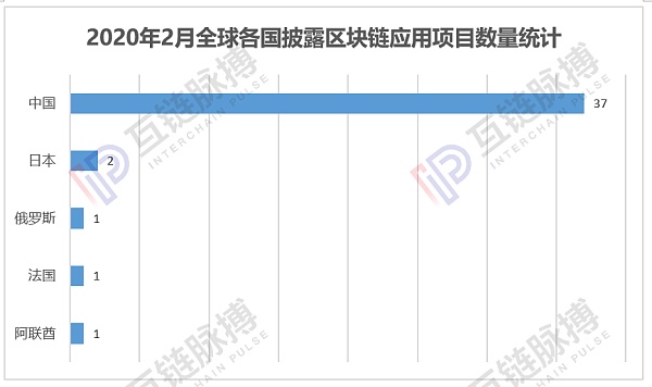 從地域分布來看,中國披露的區塊鏈應用項目37個,環比增長27.6%。相比較之下,海外市場頗為冷清,2月份國外披露的區塊鏈應用項目僅5個,其中日本有2個,俄羅斯、法國和阿聯酋各有1個。