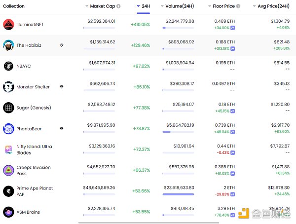 24小時內銷售價格前十的NFT 數據來源:NFTGO