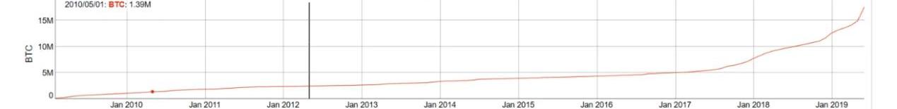 資料來源:Bitinfocharts與此同時,灰度公司通過比特幣基金GBTC仍在大量購買比特幣,購得的比特幣全數鎖入Coinbase托管行。GBTC的購買行為是比特幣價格在短期的重要支撐。每次GBTC的購買動力減弱,比特幣價格就會失去支撐。請注意,GBTC在周末及節假日不進行購買。最近一次暴跌至8,200美元就發生在周末。昨天(5月21日),GBTC購買了585個比特幣,僅為近期每日購買量2000+比特幣的25%,價格一度跌至8800美元。5月15日,GBTC也只購買了500個比特幣,價格則從9800美元跌至9100美元。