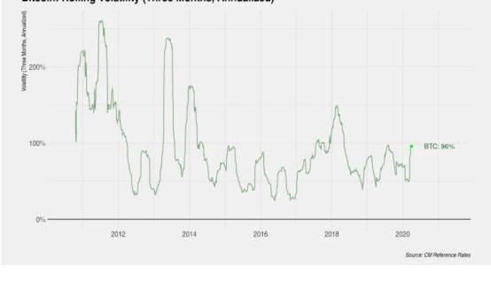 假設價格保持在當前水平,且礦工收益占整個區塊獎勵的一半。在上述三條假設下,我們推算整個2020年的礦工收益,大概也就是半個Coinbase價值的賣方壓力,這較之前大幅度下降。推論三:礦工對數字貨幣的價格有著順周期影響雖然挖礦行業一直在追求長期平衡,但現實情況是,利潤率在這種平衡狀態附近會經歷較大的波動。在這一行業相關成本的變化是緩慢的,并且通常帶有合理滯后性。因為進入或退出該行業,購買其他設備以及其他擴大規模的操作的都需要時間;以及數字貨幣本身帶有的難度調整機制也需要兩周的時間。而在另一方面,收入則是快速變化的,因為主要決定因素之一是數字貨幣的價格,而該價格的波動性又比較強,比如BTC的年度波動率經常超過50%。