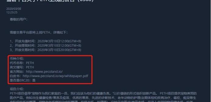 其實早在3月10日開盤前,受害者就發現項目存在風險,想叫停根本停不下來。受害者無意間發現,雪碧交易所上所幣種與項目方1EO幣種竟然是兩個完全不同幣種,這是什么操作?根據雪碧官網給到的項目方信息找到其官網后,發現項目方是一家注冊地位于美國的區塊鏈寵物健康護理平臺,官網服務信息提供中文、韓文、英文三種版本,但白皮書只有韓文版本。而這不是最致命的,最致命的竟然是,雪碧上所幣種為PETH,但項目方官網1EO信息,包括白皮書幣種卻為PECO。