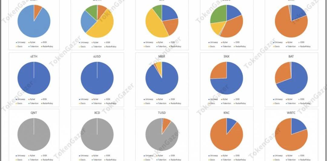 接下來,我們主要通過對DEX中占據主導地位的Uniswap、Kyber、IDEX、Oasis、Tokenlon和RadarRelay進行分析,以探究DEX2019年的發展狀態以及未來的發展趨勢。