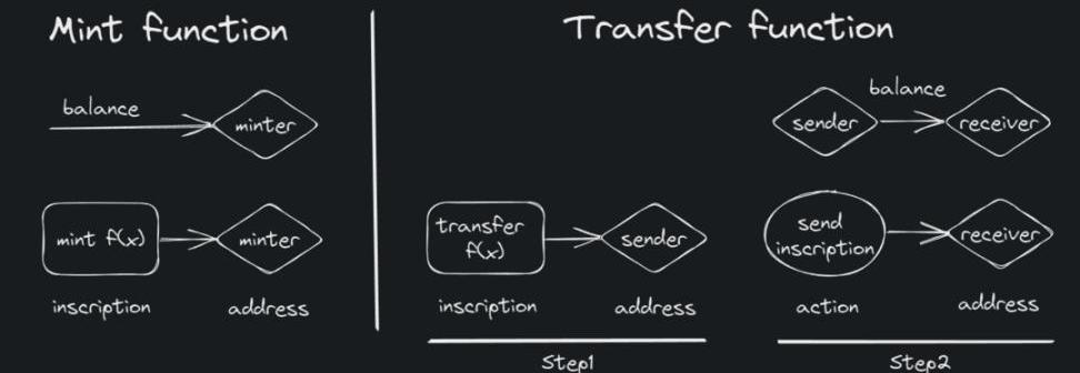 https://domo-2.gitbook.io/brc-20-experiment/看名字我們就猜到,這個對標的是ERC-20同質化代幣標準,它的核心功能包括:部署代幣,鑄造代幣和轉移代幣。這三種功能實際上對應的就是不同的銘文。