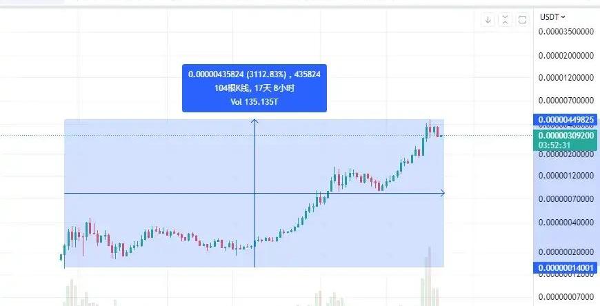本輪上漲中討論度最高的memeCoin——PEPE,在誕生不足1個月的時間內已擁有超15億美元市值,24小時全網交易量超17億美元,近乎與同時期Binance平臺比特幣現貨交易量持平。自PEPE4月中旬開始陸續上線CEX后,其最高漲幅已超過3000%。