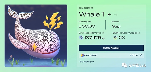 為了表達鯨魚在海洋生態系統中的上述關鍵作用,Diatom創建了50個Whalez?NFT的有限集合。每個Token都有一個整潔的獨特藝術品,但也代表了其去除塑料的公斤數。通過這種方式,投資者可以清楚地了解他們購買NFT對更大利益的影響。