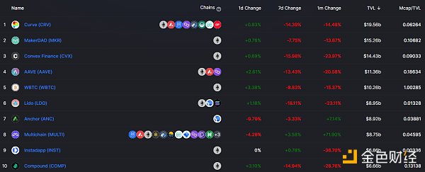 DeFi項目鎖定資產前十排名及鎖倉量 數據來源:defillama