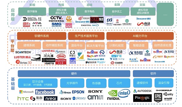 基于影視特效行業的多年沉淀,虛擬人在制作端已經形成了一套頗完備的工業化制作流程和商業體系:根據中國信通院發布的《2020 年虛擬數字人發展白皮書》,虛擬人的基礎設施層包括顯示、光學、傳感器、建模、渲染引擎等部分,主要由海外巨頭把持;平臺應用層主要包括制作虛擬人的具體功能,包括動作捕捉、智能語音、自然語言處理等。