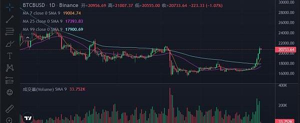 上周加密市場跟隨美股大漲,比特幣在周三強勢突破周線后隨機連續三個交易日連漲5%以上,帶動了整個加密市場進行了一波大反彈,交易量也顯著上升,直接從上周的不到100億美元上漲到了200億美元,市場多空比力量迅速發生反轉,造成空頭上億美元的清算。截至撰稿比特幣收于20783.38,周內上漲21.68%,振幅24.45%;以太坊收于1552.81,周內上漲20.37%,振幅24.03%。上周的上漲首先對于空方力量來講是一次不小的打擊,幣安的合約持倉量在短時間內下降近15%,基本都是空頭止損或者爆倉導致的持倉下降。但從穩定幣的角度講,本次上漲的主要推動力中并沒有看到主流穩定幣的明顯流入,穩定幣供應量在本周與上周基本一致,因此本次上漲主要還是靠存續資金而暫時沒有新資金流入,同時市場有聲音說CME比特幣期貨的持倉量在上周有2.5億美元的上漲,也有可能會是本次上漲的主要推手之一。
