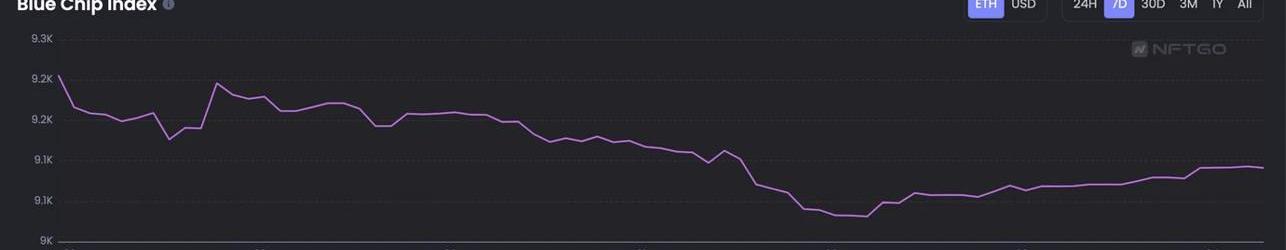 本周NFT藍籌指數相比沒有太大顯著提升,截止12月4日,nft藍籌市場還在一個熊市的回暖期間,相比與11月中的市場最低點已經有了一定的反彈,但是藍籌指數還處在低點。
