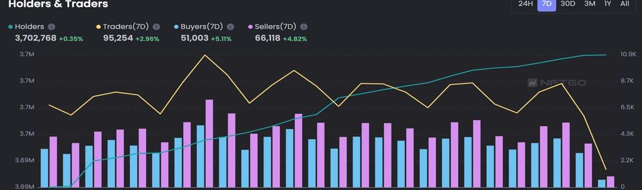 本周NFT市場的持有者/交易者活躍度相比上周有了一定程度上漲,買家相比上周上升5.11%,賣家同比上升4.82%,持有者則上升了0.35%。總體來看,NFT價格逐步回到正軌,市場也從之前的冰點逐漸反彈,本周整體的市場活躍有所上升。
